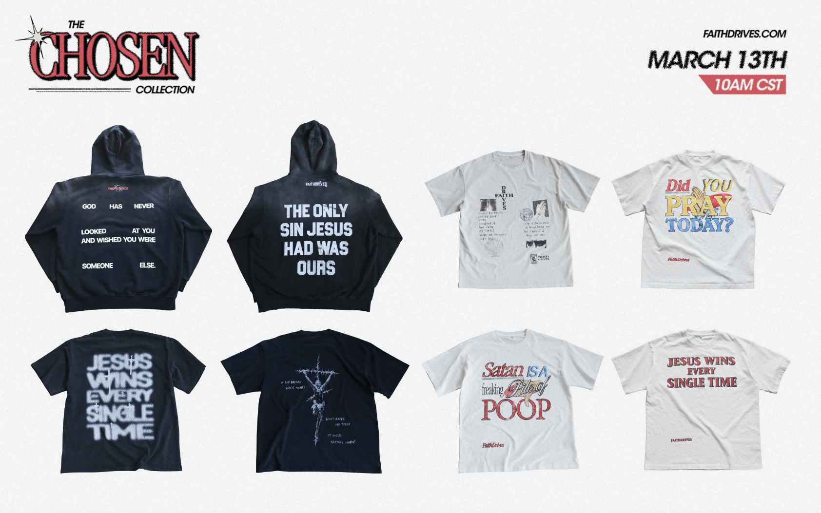 For the past few months I’ve been working on something new for Faith Drives — a collection of apparel designed to represent Jesus in everyday life called The Chosen Collection.
